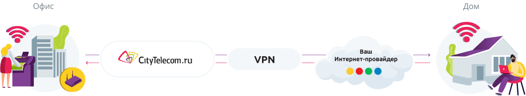 - Удаленного доступа к файлам и базам — VPN-соединение
