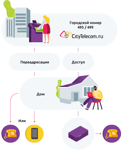 При наличии виртуальной АТС от Citytelecom.ru настройка переадресации производится бесплатно.